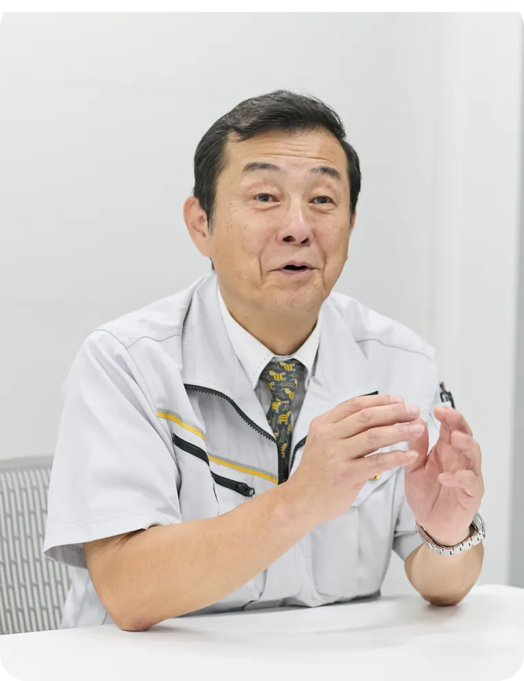 - 現場担当の責任者である中森さんがお若い頃から当社に足繁く通っていただいてご苦労されて、言うならば種まきをしていただいたことが、しっかりとした幹になり、花を咲かせているところだと思っています。ですから今は、新しい案件についても安心してお任せできる。そういった強い信頼関係が構築されています。サンセイテクノスさんの良さは、技術面のパートナーとして頼りにさせていただいているという点と、レスポンスの早さですね。厳しい納期でも一度は必ず検討していただけますし、中森さんが不在でもアシスタントの森口さんが対応してくれます。