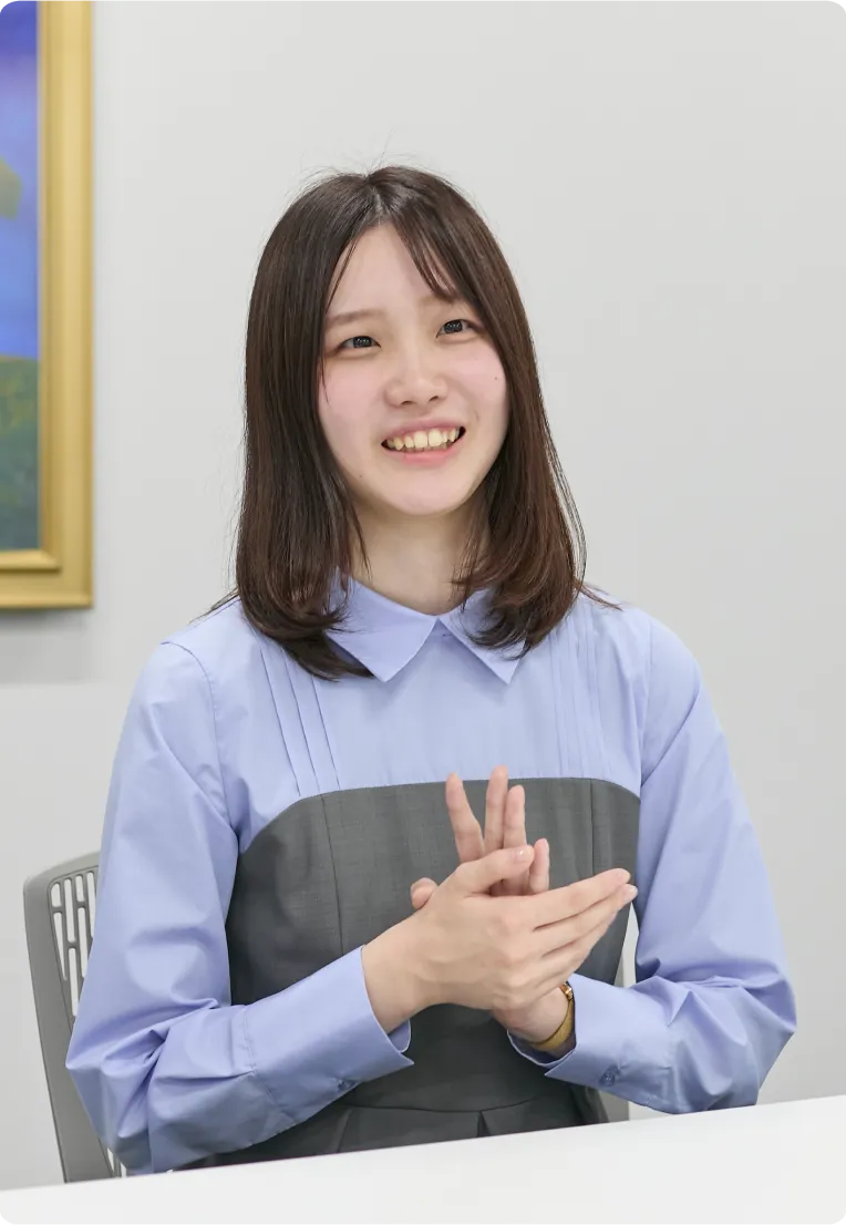 私は入社して4年目で、タクミナ様を担当する内勤として経験させてもらっている最中です。短納期をご要望される場合がありますが、中森に相談しながらメーカーと交渉して、できるだけご要望に近づけるように最善を尽くします。